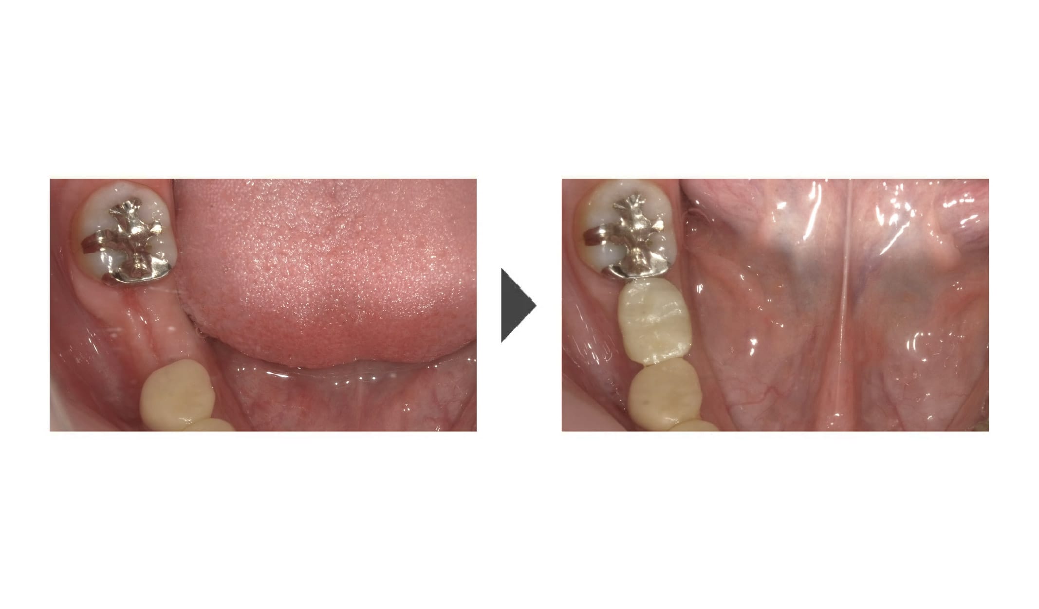 骨の状態とインプラントの埋入位置を考慮しながら、見た目と噛み合わせの回復を行いました。